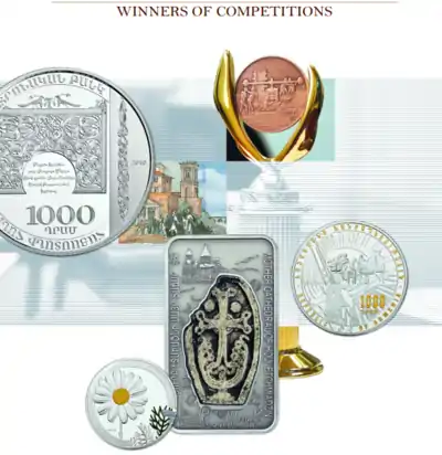 The national currency of the Republic of Armenia is dram (ISO code - AMD, the sign - ). One dram is equal to one hundred luma. The CBA is vested with the exclusive right to issue currency. The national currency was put into circulation on 22 November 1993. The design of the graphical symbol (sign) of the Dram of the Republic of Armenia authored by Karen Komendaryan and Ruben Arutchyan was approved and chosen out of the other design proposals under the Central Bank of Armenia Board Resolution No. 25, dated 09.10.2001. The sign of the Dram was registered in the State Standard of the Republic of Armenia in 2007 and in the ISO/UNICODE international standards in 2012. On September 21, 1991 Armenia was proclaimed as an independent republic. On this occasion there arose a need to create a national currency. On March 27, 1992, the name was chosen for the Armenian currency, the Dram, and sketches of the future banknotes were prepared. The first series of banknotes of 10, 25, 50, 100, 200 and 500 dram entered into circulation on November 22, 1993. Then, in 1994 banknote series was added with the banknote of 1 000 dram denomination, and later, in 1995, with 5 000 dram banknote. The design of the banknotes contained images of modern and historic, architectural and cultural monuments of Armenia. While working on the first series of banknotes, the Central Bank of the Republic of Armenia actually started a tradition of representing on them the most important aspects of the Armenian cultural and historical heritage. Banknotes of the first series circulated until 2005, although since 1995, work began on the development of a new, second series of banknotes. The design concept changed definitely. Banknotes became more sophisticated in terms of technical parameters: they were more in line with international standards and the latest international trends. The banknotes which replaced the first series began portraying the most famous personalities who have left an invaluable imprint on the culture and historical heritage of Armenia. In the period from 1999 to 2010 banknotes of 50, 100, 500, 1 000, 5 000, 10 000, 20 000, 100 000 dram were in circulation. The first two of them are not circulating nowadays. On June 4, 2001, the first commemorative banknote of 50,000 dram to celebrate the 1700th anniversary of the adoption of Christianity as the state religion in Armenia was issued. The design of the banknote was different from the general concept adopted for the second series of the Armenian banknotes. The banknotes of the second series, including the commemorative one, were re-issued in the form of reprints, keeping with the overall design as well as inscriptions. In the process of reprinting particular attention was paid to improving the security of banknotes and bettering their overall quality. Nearly all the achievements of modern security technologies – varnishing, use of holograms, OVI, etc. – were introduced. The number of security features at the moment reaches 17, which is why the Armenian banknotes are able to meet the highest standards accepted in security printing. The most important work was done during the last reprint of banknotes of 1 000, 5 000, 10 000 and 20 000 dram banknotes. All design elements were optimized and consolidated; modern security features appeared not only on the obverse, but on the reverse of the banknotes as well. This work has earned high praise of international community. In particular, at the international conference of banknotes in Singapore in 2011 this approach was considered relevant and effective. The current circulation is difficult to imagine without circulating coins. The first series of circulation coins was issued in Armenia in 1994. Those were the coins with nominal value of 10, 20, 50 luma and 1, 3, 5, 10 dram. Furthermore, since 2003, the second series coins with nominal value of 10, 20, 50, 100, 200, 500 dram were issued. The highest nominal value of the series, 500 dram, was issued in order to replace banknotes of the same nominal value. All the coins, except for 10, 20, 50 luma and 1, 3, 5 dram, which quickly lost their relevance due to high inflation at the time, were struck several times. The third series of Armenian dram banknotes were issued in 2018, to celebrate the 25th anniversary of Armenia's national currency. All denominations for this series are the same as its previous issues except the 2,000-dram banknote which is a newly introduced denomination. The 50,000-dram banknote was re-issued for this series and the omission of the 100,000-dram banknote for this issue. The first three denominations, 10,000 ֏, 20,000 ֏ and 50,000 ֏, were issued on November 22, 2018. The final three denominations, 1,000 ֏, 2,000 ֏ and 5,000 ֏ were issued on December 25, 2018. [5] In 1996–97, circulation commemorative coins (two copper-nickel coins dedicated to the 32nd Chess Olympiad and the 100th anniversary of the birth of Charents, and a gold coin dedicated to the goddess Anahit) were issued for the first time. The next issue of commemorative coins in 2012 was noteworthy as an interesting and modern concept was being first implemented. In addition to 50 dram circulation coins with standard design, commemorative coins with identical specifications were issued in dedication to the 10 regions of Armenia and the Armenian capital Yerevan. The obverse of these coins depicted the most typical images associated with the regions they represent. All commemorative coins are in circulation on a par with the standard ones and are a good source of increased interest among collectors. In pursuit of learning from the experience of countries such as the United States, Austria, Canada, etc., starting 2011 the Central Bank of Armenia has been issuing silver bullion coins of the series "Noah's Ark". These coins represent 7 weight categories from 1/4 oz to 5 kg. The purpose of the project is to provide opportunities for households to invest their extra money in silver coins. A w