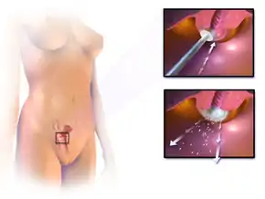 A radical trachelectomy can be performed abdominally[97] or vaginally[98] and opinions are conflicting as to which is better.[99] A radical abdominal trachelectomy with lymphadenectomy usually only requires a two- to three-day hospital stay, and most women recover very quickly (about six weeks). Complications are uncommon, although women who can conceive after surgery are susceptible to preterm labour and possible late miscarriage.[100] A wait of at least one year is generally recommended before attempting to become pregnant after surgery.[101] Recurrence in the residual cervix is rare if the trachelectomy has cleared the cancer.[96] Yet, women are recommended to practice vigilant prevention and follow-up care, including Pap screenings/colposcopy, with biopsies of the remaining lower uterine segment as needed (every 3–4 months for at least 5 years) to monitor for any recurrence in addition to minimizing any new exposures to HPV through safe sex practices until one is actively trying to conceive.