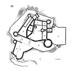 - the walls of the dwelling were raised (E on the plan) and reached the height of the keep (which thus acquired a more massive silhouette)