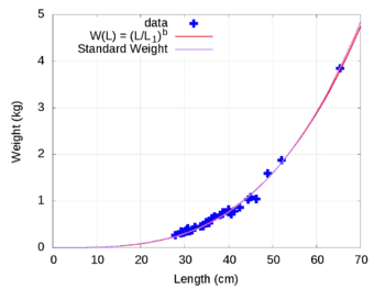 - ↑ Anderson RO, Neumann RM (1996). Murphy BE, Willis DW (eds.). Length, Weight, and Associated Structural Indices", in Fisheries Techniques (second ed.). American Fisheries Society.