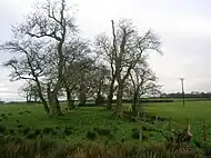 Alternative local names for the burial mound are the 'Jockey's cap' and the 'Monk's Graveyard', the 1897 OS map states that human bones were found in the hill. The Forrest family of Byres Farm are direct descendants of the Templetons and they use the term 'Monk's Graveyard' for the Chapel Hill. The validity of oral tradition in this case is exceptionally strong and may indicate that the chapel was not on the mound but on the site of the old Chapelton House. John Dobie in his additional notes to his father's work calls the site 'the Chapeltons'. The mound itself is one of the finest preserved Bronze Age burial mounds in Ayrshire.[9] A previous owner of the Chapel Hill mound allowed an unofficial excavation to take place in around 2001. It is not known if any finds were made.