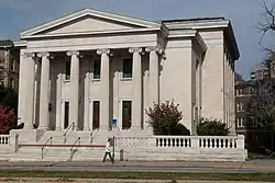 He was born in Portsmouth, Virginia and trained as a naval architect. He received a degree in engineering from the University of Virginia at age 15. During the Civil War he served as a captain in the engineers corps, under General George Pickett of the Confederate States Army. After the war, he traveled to South America and served in the Chilean Navy.[1] He returned to the United States and practiced architecture in St. Louis, Missouri before coming to Baltimore about 1868. He was a founding member of the Baltimore Chapter of the American Institute of Architects in 1870. He was known for his Romanesque Revival architecture style. He became an AIA fellow in 1905. In 1905 he had established Charles E. Cassell & Son in Baltimore, Maryland. His son John Cassell, died in 1909 from influenza.[2] Following this, he occasionally associated with his nephew in Norfolk, Virginia under the office name of Cassell & Cassell. He is buried in his family’s lot at Cedar Grove Cemetery in Portsmouth, Virginia.[3]