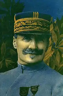 In April 1916, he commanded an army corps and on 22 June the same year, he was promoted to divisionary general. He then commanded the 35th Army Corps and took part in the Battle of the Somme from July to September.[2][3] In 1917, he occupied the Chemin des Dames. On 9 June 1918, his units halt the German Courcelles-Ayancourt offensive. On 19 July 1918, he was given the Commander of the Legion of Honor.[4] General Jacquot resumed service at the Chemin des Dames and entered Rocroi on 11 November 1918.