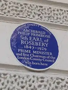Blue plaque to the 5th Earl of Rosebery in Charles Street