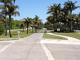 A number of bridges along the abandoned route also remain to this day as well, the most notable of which is the causeway over Gasparilla Sound that connected the line to the island. The southernmost trestle is now a fishing pier as is the northernmost trestle up to the abandoned drawbridge tower.[15] The rest of the causeway and trestles, which remain just to the south of the Boca Grande Causeway, are now completely abandoned. The center trestle's swing span is still in place and is locked open to facilitate boat traffic. The bascule span on the northernmost trestle was removed and reinstalled in 1988 over Reynolds Creek in Long Beach, New York on the Long Island Rail Road's Long Beach Branch, where it is still in service.[2]