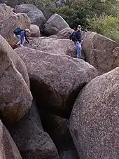 The Charon's Garden Wilderness Area is part of the Wichita Mountains Wildlife Refuge in southwestern Oklahoma and is managed by the US Fish & Wildlife Service.[1] It is located to the west of Medicine Park, Oklahoma and north of Lawton, Oklahoma. The wilderness area, dominated by rugged granite mountains, oak forests, and mixed grass prairies, covers 5,723 acres (23.16 km2) in the western portion of the Refuge. It is not unusual to run into deer, buffalo, elk, longhorn, and prairie dogs. Day use and limited backcountry camping is allowed with a permit from the Refuge. The area is popular with rock climbers, with formations such as Echo Dome and Crab Eyes being popular destinations.