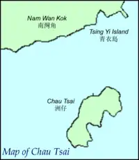 Chau Tsai (Chinese: 洲仔) was a small island off the southern shore of Nam Wan Kok on Tsing Yi Island, Hong Kong. It was also known as Chun Fa Rock (Chung Hue Rock), or Chung Hue Shik (春花石) in some historical documents. The island was merged with Tsing Yi Island by land reclamation for the construction of the CRC Oil Storage Depot.