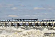 Centrale Hull 2 is a 27 MW 4-turbine hydroelectric generating station on the Ottawa River on the Gatineau side of the Chaudière Falls (45°25′17″N 75°43′11″W / 45.42143°N 75.719728°W). It is owned by Hydro-Québec and is listed as a run-of-the-river dam and its commission date as 1920–1969.[46] Its reservoir capacity is 4 million cubic metres (140 million cubic feet).[47]