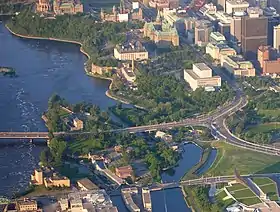 All but one of the ten status Algonquin communities opposed the Zibi project,[36] although as noted above, two of those communities shifted their position.[37][38] "Free The Falls"[39] formed to support the Ontario Municipal Board appeal of the city's rezoning of the site as well as to support the Asinabka vision. Chaudière and Albert Islands to their natural state, and is collecting signatures on a petition to that end.[40] This non-Indigenous group views it as an example of cultural appropriation, "red-washed commercial exploitation", and a violation of Indigenous Rights as per the UNDRIP. They disagree with the development because they believe that the islands around the falls have been a sacred religious site for millennia, and would prefer to see all islands turned into public parkland and Indigenous site as per the 1950s NCC plans, the Asinabka vision led by the late Algonquin leader William Commanda,[41] and the AFN resolution of December 2015. Other notable project opponents include Indigenous architect Douglas Cardinal[42] and author John Ralston Saul.[43]