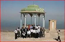 ![]() A group of visitors by the monument at the site | |