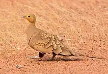 The chestnut-bellied sandgrouse or common sandgrouse (Pterocles exustus) is a species of sandgrouse. It is a sedentary and nomadic species that ranges from northern and central Africa and further east towards western and southern Asia. There are six recognised subspecies.[2]