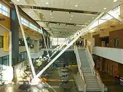 In 2008 the school was relocated to the former Boren Middle School during construction for a major upgrade and expansion. On September 8, 2010, Chief Sealth re-opened in the newly renovated facility. Denny International Middle School opened in the newly expanded facility in September, 2011.[14] The much larger building supports grades 6–12, including students from CSIHS and DIMS. The renovation included removal of portable classrooms, seismic upgrades, new mechanical, technology and fire protection systems, energy-efficiency upgrades, revamped auditorium, expanded music facilities, new finishes, and addition of new shared spaces.[15] Both schools remain distinct within the shared facility, although some spaces such as the renovated CSIHS auditorium and the new two-story Galleria are shared between the schools. The design of the renovation and expansion was undertaken by Bassetti Architects of Seattle.