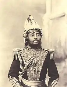 Mukhtiyar Bhimsen Thapa was the first person to use Commander-in-Chief as the title of army chief.[4] He was given the title of General as an additional portfolio to the position of Mukhtiyar.[5] During the Anglo-Nepalese War, Bhimsen bore all the responsibilities of the army as a Commander-in-Chief.[6] King Rajendra Bikram Shah appointed Bhimsen to the post of Commander-in-Chief on 1835 A.D.[7] and praised Bhimsen for long service to the nation.[8] However, on 14 June 1837, the King took over the command of all the battalions put in charge of various courtiers, and himself became the Commander-in-Chief.[9][10] Immediately after the incarceration of the Thapas in 1837, Dalbhanjan Pande and Rana Jang Pande were the joint head of military administration.[11] However, Rana Jang was removed after 3 months in October 1837.[12][13][14][15] During the Rana dynasty, the founding Rana Prime Minister Jung Bahadur Rana made the position hereditary on agnatic rolls of succession. The Commander-in-Chief was made the second rank in the hierarchy to Prime Minister of Nepal and was made to succeed as the Prime Minister in case of death of reigning Prime Minister.[16] Commander-in-Chief (C-in-C) was second in the hierarchy than Supreme Commander during Rana Era.[1] The eradication of Rana dynasty from power after Revolution of 1951 did not end Ranas' dominance. During the Panchayat period, the Ranas continued to dominate the rank of Commander-in-Chief of Nepalese Army.[4] In the late 1970s, Commander-in-Chief was replaced by new term Chief of the Army Staff (COAS) from the reign of General Singha Pratap Shah.