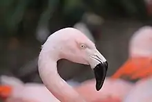 Head of a Chilean flamingo at Durrell Wildlife Park (Jersey)