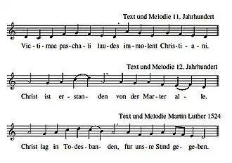![]() "Christ lag ynn todes bande" in Eyn geystlich Gesangk Buchleyn of 1524 | |