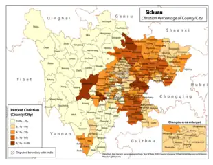 - ↑ "Christians in China Stats: Sichuan". asiaharvest.org. 2020. Retrieved 25 September 2023.