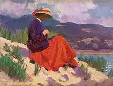 Williams was born in Maesteg, Wales. His father Evan Williams wished for him to be a doctor, but he disliked the idea. A visit to the Walker Art Gallery, Liverpool, in 1892, where he spent some hours in front of Frederick Leighton's Perseus and Andromeda, revealed a new world to him. He left the Gallery with a firm decision that he would be an artist. He studied first in Neath at the town's Technical Institute in 1892 and 1893 under Mr. Kerr. From 1893 he spent three years at the Royal College of Art and then studied at the Royal Academy Schools from 1896 until 1901.[1] In 1902, his Paolo and Francesca was hung in the Royal Academy and his portrait of his father was shown there in 1903.[2] These were the first of 18 paintings by Williams exhibited there. His portrait of Sir Alfred Lyall was exhibited at the Royal Academy in 1910 and brought him an invitation from the Royal Society of British Artists to join their ranks and he exhibited 37 paintings in their Gallery over the next decade. He also exhibited with the Royal Society of Portrait Painters until 1930.