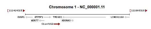 Illustration of genomic context of C1orf162.