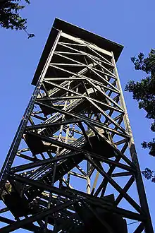 Chuderhüsi Tower (or "Aussichtsturm Gauchern") is a 42-metre observation tower built of wood at Röthenbach im Emmental, Switzerland. The tower was built in 1998, burnt down in 2001 and was rebuilt in 2002.