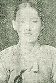 She studied abroad in Japan in 1922 for a year when she was 15 years old to study English.[2] Afterwards she came back to Daegu to establish the Joseon Women's Organization (조선여성동우회), a woman's rights group that was categorized as having socialism at its main influence with other notable Korean feminists such as Ju Se-juk (주세죽) and Heo Jong-suk.[2][3][4]