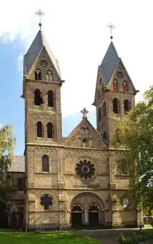 The Church of St. Lambertus (German: Pfarrkirche St. Lambertus), known locally as the Immerather Dom (meaning "Cathedral of Immerath"), was a Roman Catholic parish church in the village of Immerath, Erkelenz in North Rhine-Westphalia, Germany. A church dedicated to Saint Lambert of Maastricht had existed on the site since at least the 12th century, being rebuilt and enlarged a number of times before being demolished in 1888. It was replaced by Romanesque Revival church building, which was constructed between 1888 and 1891 to designs of Erasmus Schüller.