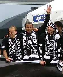 ![]() Robert Lechleiter, Cidimar and Enrico Valentini celebrate VfR Aalen's promotion in 2012 | |||