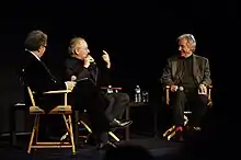 Cinémathèque's president Costa-Gavras (right) attentive to Steven Spielberg's (left) Masterclass [Paris - Jan. 9th, 2012].
