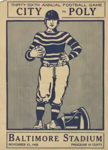The City–Poly football rivalry, also referred to as the "City-Poly Game" is an American football rivalry between the Baltimore City College Black Knights (City) and the Baltimore Polytechnic Institute Engineers (Poly). This matchup is the oldest football rivalry in Maryland.[1] The rivalry is believed to be the second-oldest high school football rivalry in the United States between public high schools, predated only by the English High School of Boston-Boston Latin School football rivalry, which started two years earlier in 1887. The rivalry began in 1889 and the teams have met 134 times in history. City College leads the series 66-62-6.[2][3]