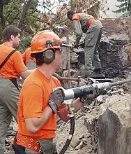 Pioneers are responsible for rescue work at disaster sites (front-line rescue), as well as consolidation, clearing and, ultimately, restoration work. To this end, they are skilled in the use of a wide range of equipment, including chainsaws, generators, fork-lifts, water pumps, fire shears and stretchers. Good safety skills are essential, given the dangers involved.