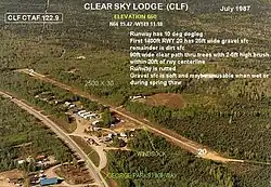 Clear Sky Lodge Airport (FAA LID: CLF) is a public-use airport located four nautical miles (7 km) south of the central business district of Clear, Alaska, United States. This airport is privately owned by Rabideau's Clear Sky Lodge.[2][1]