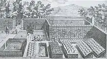 17th century garden showing rows of cloches