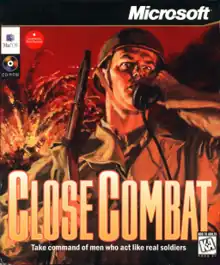 Close Combat is a real-time computer wargame that takes place from a top-down graphical perspective,[1][2] in contrast to the isometric visuals used in strategy games such as Warcraft II: Tides of Darkness.[2] A simulation of short-distance battles during World War II,[1] Close Combat recreates the conflict between the United States' 29th Infantry Division and Germany's 352nd Infantry Division in the six weeks after the Invasion of Normandy.[3][1] The player is able to control either side and manages infantry, crew-served weapons and armor via six commands: move, fire, move fast, defend, hide and smoke.[4][3][1][2] Tactics such as cover, suppression and unit positioning are required to win; soldiers are vulnerable in large groups and while charging.[5] The game's battles play out in bocage environments, open plains, and towns such as Saint-Lô.[3]