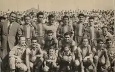 The club's colors, yellow and blue, where chosen from the awnings that decorated the neighborhood's stores in those years.[2] Atlanta's first home field was in Juan B. Alberdi y Escalada Avenue of the Villa Luro neighborhood,[3] but the club would move repeatedly. This constant movement is the reason why the club was nicknamed Los Bohemios, the Bohemians, which has remained the nickname for the club and its supporters.