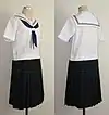 A collar with a deep V-neck in front, no stand, and a square back, based on traditional sailor's uniforms. | |