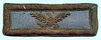 When worn alone, the insignia of rank seen at right is worn centered on headgear and fatigue uniforms. When worn in pairs, the insignia is worn on the officer's left side while a mirror-image reverse version is worn on the right side, such that both of the eagles' heads face forward, to the wearer's front.