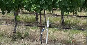 Deep winter freezes are the main climate threat to the grape growing industry of the Columbia Valley. Temperatures can drop from 40 °F (4 °C) to less than 0 °F (−18 °C) in a matter of hours. Many vineyards incorporate wind turbines to keep air circulating around the grapes and stay warm enough to prevent frost. In most years, the vines enter into a long winter dormancy rather than freeze, which helps the vines come out of the winter and into the growing season healthier.[6]
