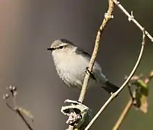 When not singing, the common chiffchaff can be difficult to distinguish from other leaf warblers with greenish upperparts and whitish underparts, particularly the willow warbler. However, that species has a longer primary projection, a sleeker, brighter appearance and generally pale legs. Bonelli's warbler (P. bonelli) might be confused with the common chiffchaff subspecies tristis, but it has a plain face and green in the wings.[42] The common chiffchaff also has rounded wings in flight, and a diagnostic tail movement consisting of a dip, then sidewards wag, that distinguishes it from other Phylloscopus warblers[43] and gives rise to the name "tailwagger" in India.[32]