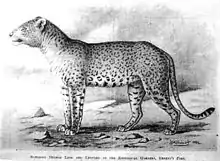 Some years ago, three hybrids, one male, two female, were bred in Chicago from a male jaguar and an Indian leopardess, and were bought by the proprietor of an American traveling show of performing animals. The male was killed by a lion, but the females lived, grew to the size of a jaguar, and when adult were mated with a young lion, choosing him, it is said, in preference to male leopards. Several litters were born, each consisting of two cubs. These resembled a lion in general colour, but were spotted. In the case of every litter the spots of one cub were like those of the jaguar, and the others like those of a leopard. The males were without mane. At the end of last year, some of these animals, then about three and a half years old, were alive in the United States.