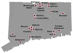 | Map of Connecticut Department of Correction's jurisdiction | |