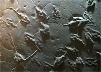 The Connecticut River Valley trackways are the fossilised footprints of a number of Early Jurassic dinosaurs or other archosauromorphs from the sandstone beds of Massachusetts and Connecticut. The finding has the distinction of being among the first known discoveries of dinosaur remains in North America.