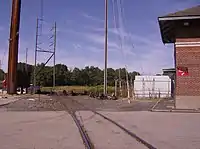 The Bustleton Branch diverged here (center of picture) and the K&T Branch diverged from the track leading the crossover at the bottom left. The tower closed in 1992.