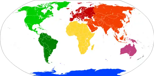 Africa   Asia   Europe    America   Antarctica   Australia [36] UNSD continental regions