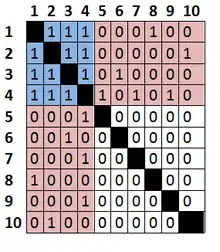 This model assumes that there are two classes of nodes. The first consists of a cohesive core sub-graph in which the nodes are highly interconnected, and the second is made up of a peripheral set of nodes that is loosely connected to the core. In an ideal core–periphery matrix, core nodes are adjacent to other core nodes and to some peripheral nodes while peripheral nodes are not connected with other peripheral nodes (Borgatti & Everett, 2000, p. 378). This requires, however, that there be an a priori partition that indicates whether a node belongs to the core or periphery.