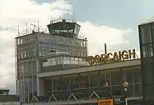 Cork Airport (Irish: Aerfort Chorcaí, IATA: ORK, ICAO: EICK) is the second-largest of the three principal international airports in Ireland, after Dublin and ahead of Shannon. It is located in Cork City, 6.5 km (4.0 mi)[1] south of the city centre in an area known as Farmers Cross.[5] In 2018, Cork Airport handled 2.39 million passengers,[6] growing by over 8% to 2.58 million in 2019. Following a decline during the COVID-19 global pandemic, which saw passenger numbers fall to 530,000 in 2020,[7] numbers in 2022 rose to 2.24 million.[8]