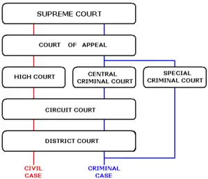 The Supreme Court, the Court of Appeal, and the High Court are the only courts specifically required by the Constitution. Other courts are established by law. Beneath the superior courts are the Circuit Court and the District Court. The Circuit Court deals with matters that must be tried before a jury. The District Court deals only with minor matters that may be tried summarily.