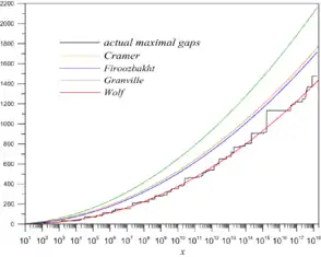 Marek Wolf[15] has proposed the formula for the maximal gaps expressed in terms of the prime-counting function :