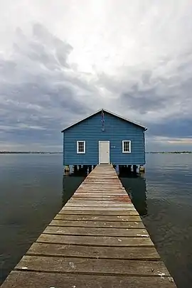 The Crawley Edge Boatshed is a well-recognised and frequently photographed site in Crawley.[7] It is thought to have been originally constructed in the early 1930s. It has changed hands several times, and after being refurbished in the early 2000s, it was relaunched by triple solo-circumnavigator of the world, Jon Sanders, and single solo-circumnavigator David Dicks.