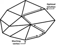 When it is initialized at a random corner of the cube, the criss-cross algorithm visits only D additional corners, however, according to a 1994 paper by Fukuda and Namiki.[6][7] Trivially, the simplex algorithm takes on average D steps for a cube.[8][15] Like the simplex algorithm, the criss-cross algorithm visits exactly 3 additional corners of the three-dimensional cube on average.