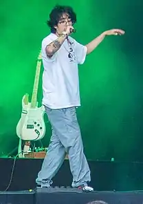 Cuco collaborated with American singer Clairo for the single "Drown", which was released in August 2018.[23] He then collaborated with Polyphia on a track called "So Strange" off their album New Levels New Devils, which was released in October 2018.[24] Cuco played alongside saxophonist Kenny G at Coachella in April 2018,[25][26] as well as at Lollapalooza in October 2018.[27] In February 2019, he collaborated with his childhood Chicano rap idols MC Magic and Lil Rob on a track called "Search".[28] After a bidding war that lasted two years, Banos signed under Interscope Records in March 2019.[29] On April 2, 2019, Cuco released "Hydrocodone," the lead single for Para Mi, before releasing "Bossa No Sé" with Jean Carter on May 22, 2019.[30][31] Cuco later released his debut studio album, Para Mi, on July 26.[22] The album touches on recent problems that Cuco has experienced first-hand, including a tour bus accident that sent him and his band to hospital.[15] It debuted at 94 on the US Billboard 200.[32]