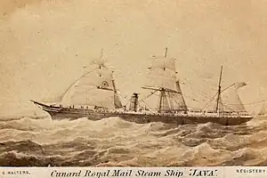 In 1839, Samuel Cunard was awarded the first British transatlantic steamship mail contract, and the next year[4] formed the British and North American Royal Mail Steam-Packet Company in Glasgow with shipowner Sir George Burns together with Robert Napier, the famous Scottish steamship engine designer and builder, to operate the line's four pioneer paddle steamers on the Liverpool–Halifax–Boston route. For most of the next 30 years, Cunard held the Blue Riband for the fastest Atlantic voyage. However, in the 1870s Cunard fell behind its rivals, the White Star Line and the Inman Line. To meet this competition, in 1879 the firm was reorganised as the Cunard Steamship Company Ltd, to raise capital.[5]